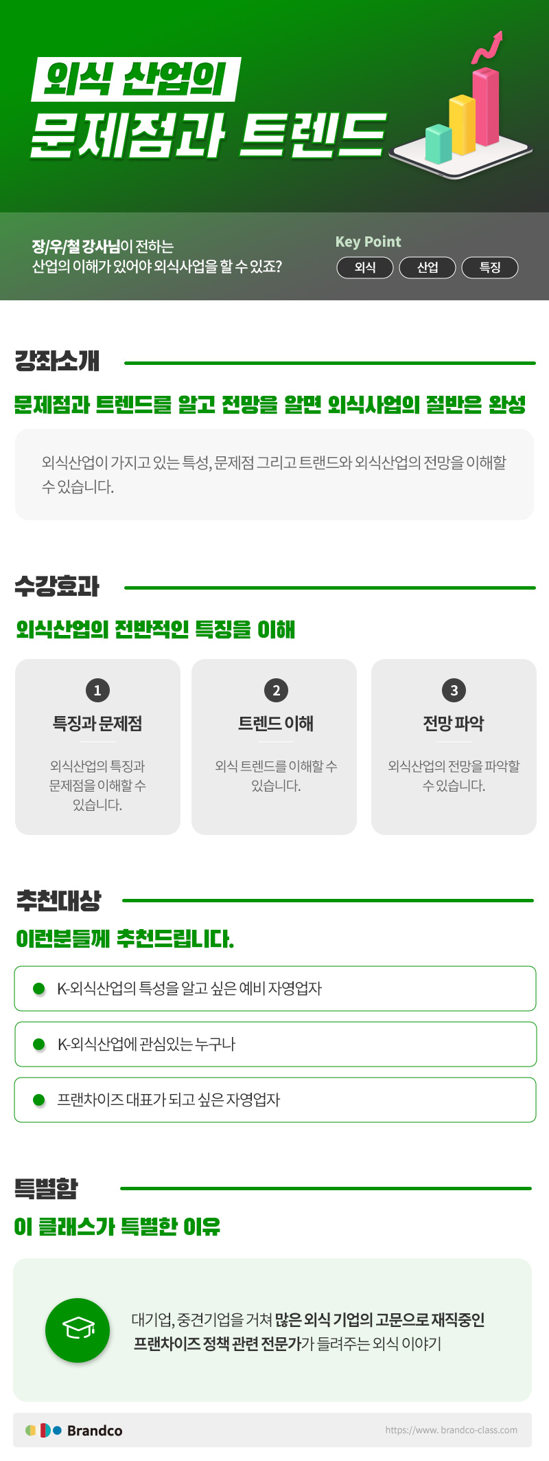 K-외식산업의 특징인 과당 경쟁, 성장세, 영세한 구조에 대한 쉽고 명확한 이해를 도와줄 핵심 강의