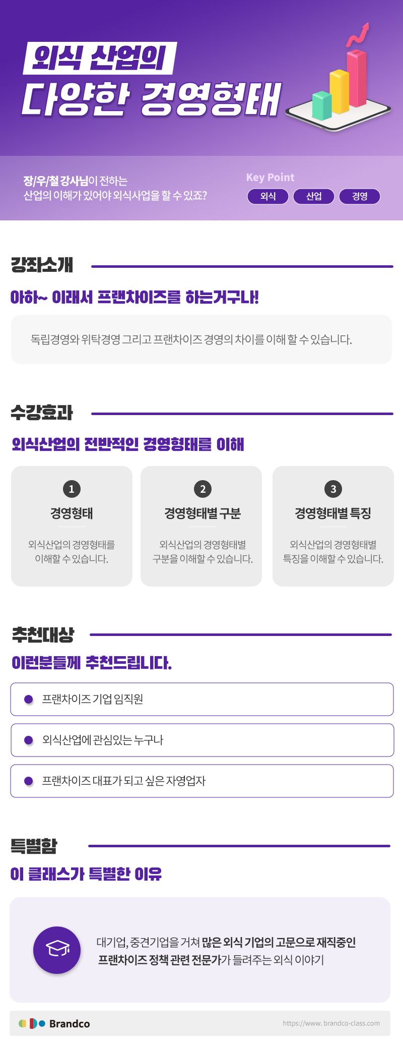외식산업의 다양한 경영형태를 알아보자. 막연한 경영이 아닌, 독립경영, 위탁경영, 프랜차이즈 경영의 차이를 알 수 있습니다.