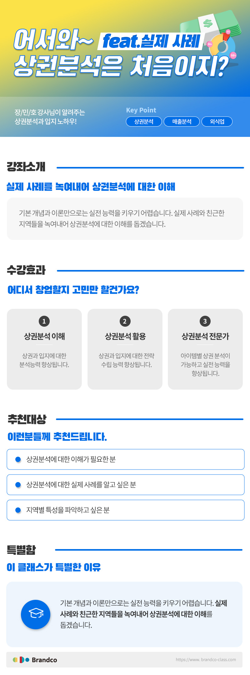 실제 외식업 매장 오픈 사례를 통해 쉽고 재밌게 상권분석과 입지 노하우를 이해할 수 있는 콘텐츠 입니다.