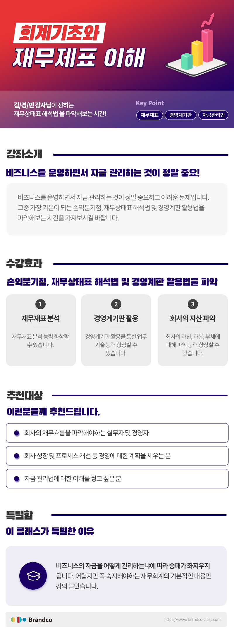 재무에서 빠질 수 없는 기본적인 손익분기점, 재무 상태표 해석법 및 경영 계판 활용법을 실사례를 통해 쉽게 전달드립니다.