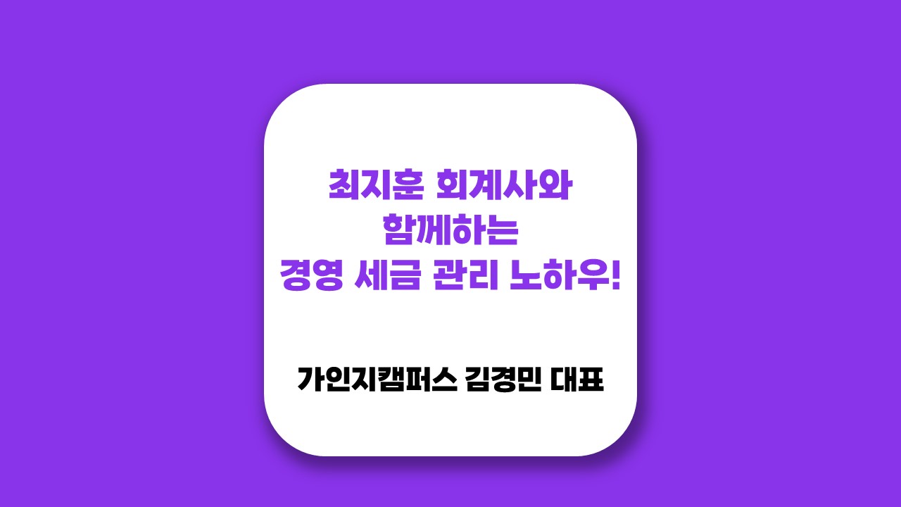 최지훈 회계사와 함께하는 경영 세금 관리 노하우!